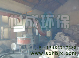 化工廠混料車間在對粉料進行攪拌、混料的時候會有大量粉塵產生,我們采用在加料口上部設計集氣罩的形式進行收塵,起到了很好的收塵效果,解決了車間內環境污染的問題。